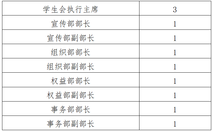 (1)员工会主席团实行执行制,主席团成员共三人,学代会得票最多者为上学期执行主席,次者为下学期执行主席,再次者为主席;