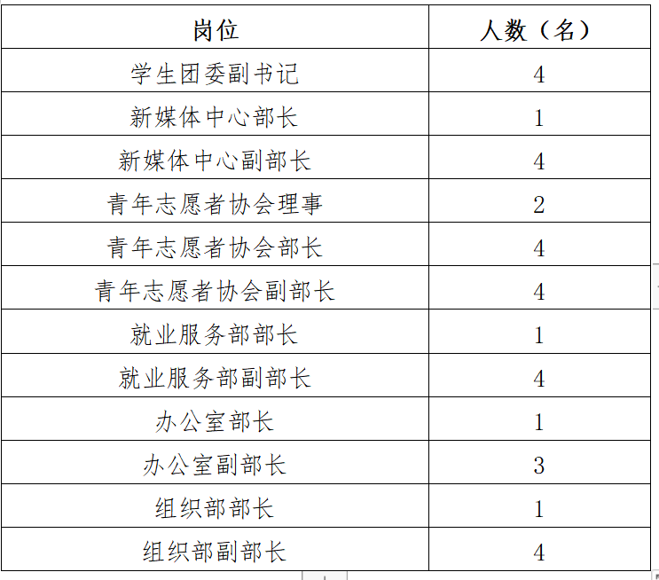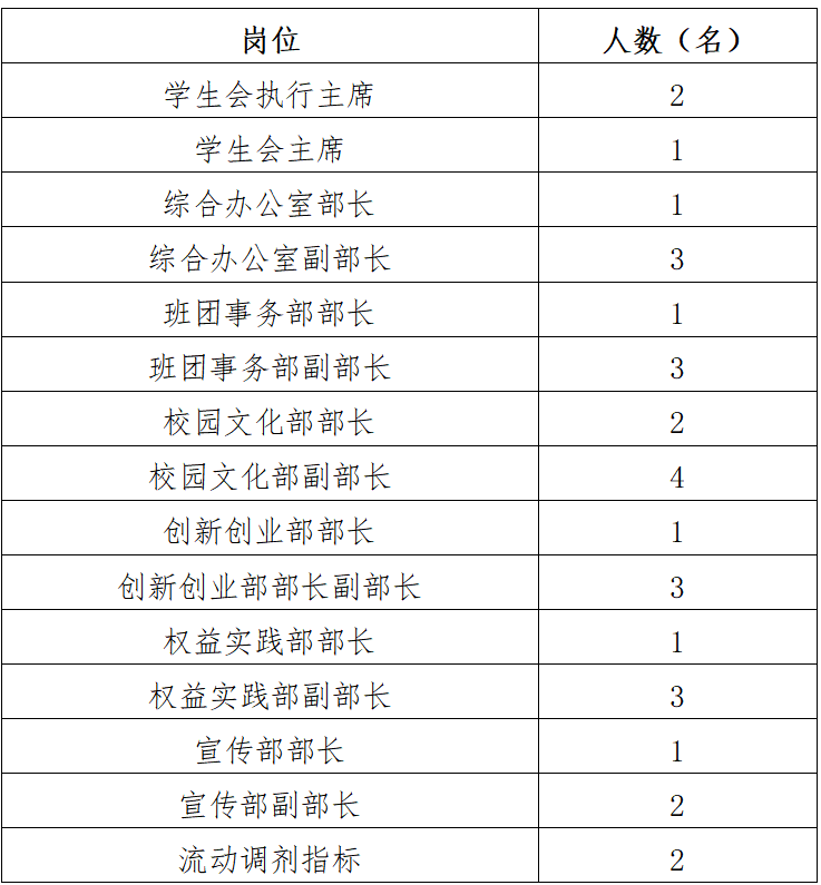 3.面试阶段。面试时间、地点群内通知。各竞选者准备好纸质申请表(统一格式)及任职工作计划书(不少于1000字)。面试环节主要考察竞选者履行竞争职位职责所必须的基本知识和能力,深入了解竞聘者基本情况、任职优势和任职后的工作设想,并就有关问题进行答辩。