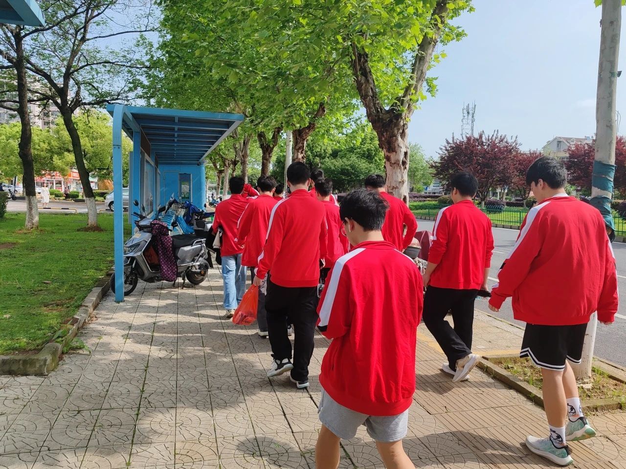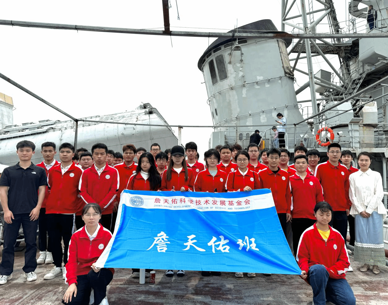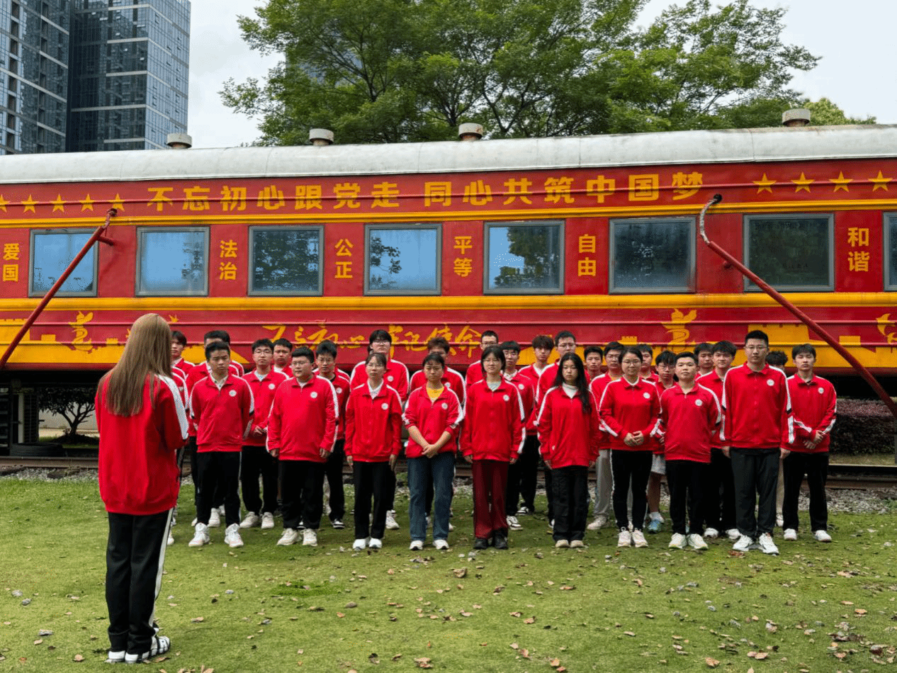 清晨,由2022级城轨詹天佑班吕季乐同学带领2021级、2022级、2023级詹天佑班的同学们步行前往南昌舰主题公园,全程4.3公里。烈日下,我们忆苦思甜,用汗水体会詹天佑先生修建京张铁路时的艰难,用脚步感受詹天佑先生为国家铁路事业做出的伟大贡献的不易。