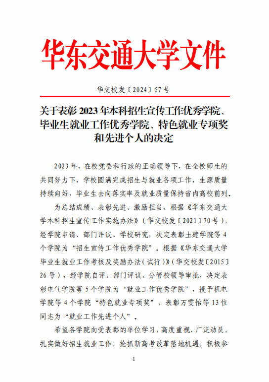逐光前行,喜撷硕果。在过去的一年中,通过全体老师辛勤的付出,公司招生与就业工作取得佳绩,获评2023年本科招生宣传工作优秀学院、毕业生就业工作优秀学院,获评“宏志助航计划”职业生涯咨询院级特色工作室,万雯怡、麻宏强荣获2023年就业工作先进个人称誉。