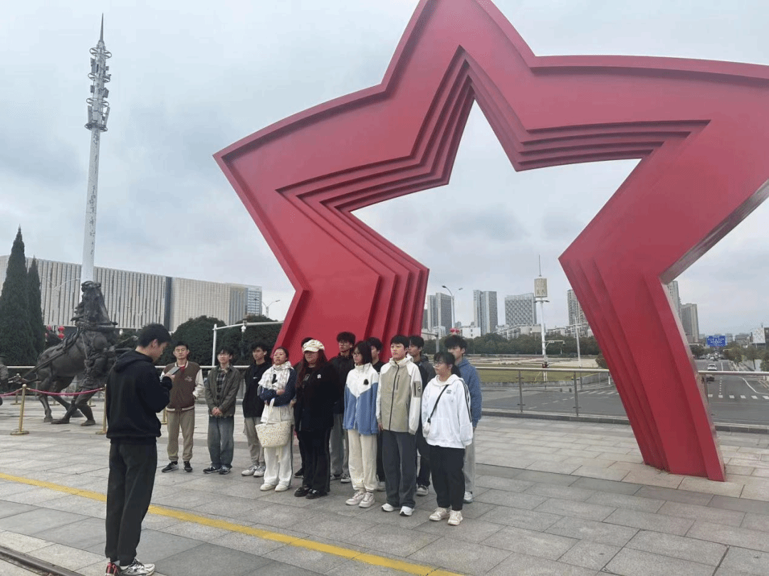 阳光明媚,寒意轻拂。11月17日下午两点半,英才班的同学们在学校南区西门整装待发,眼神中闪烁着对此次旅程的期待与对历史的敬畏。一声令下,英才班学子踏上了徒步前往建军雕塑广场的征程,心中满是对军魂的追寻与敬仰。