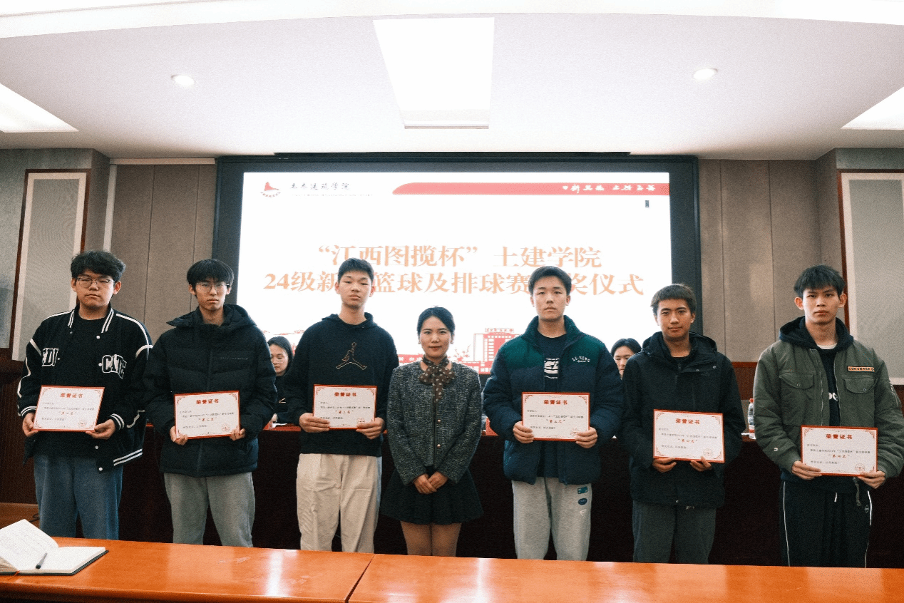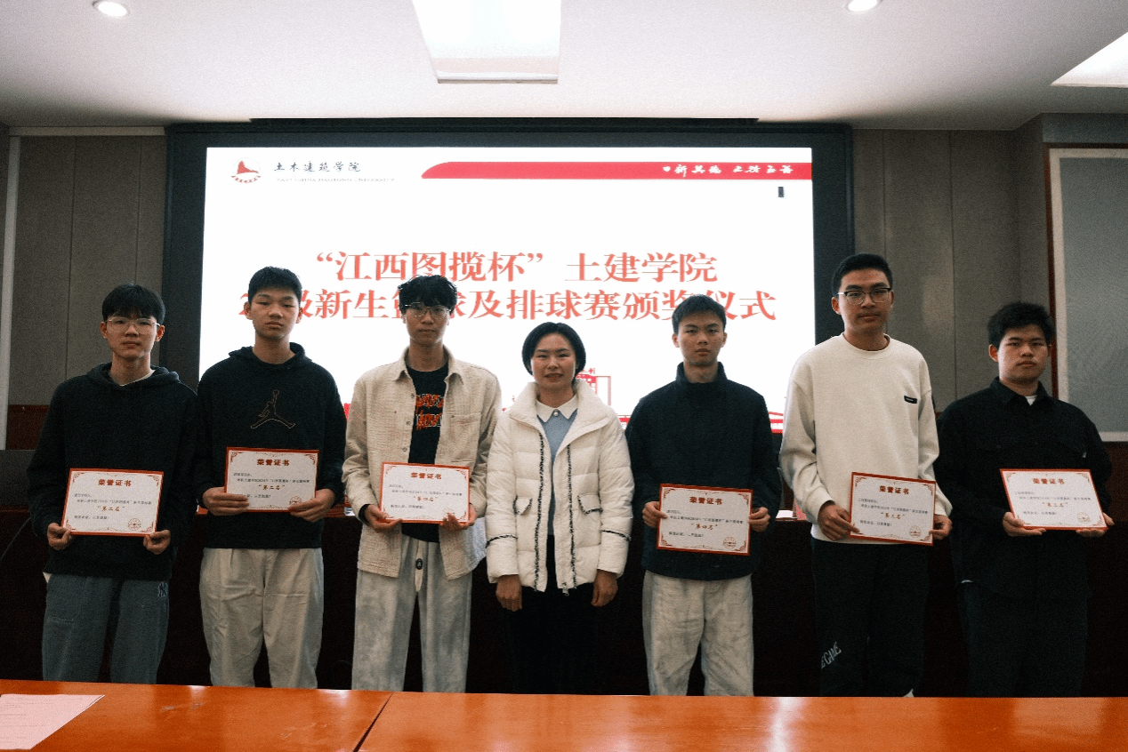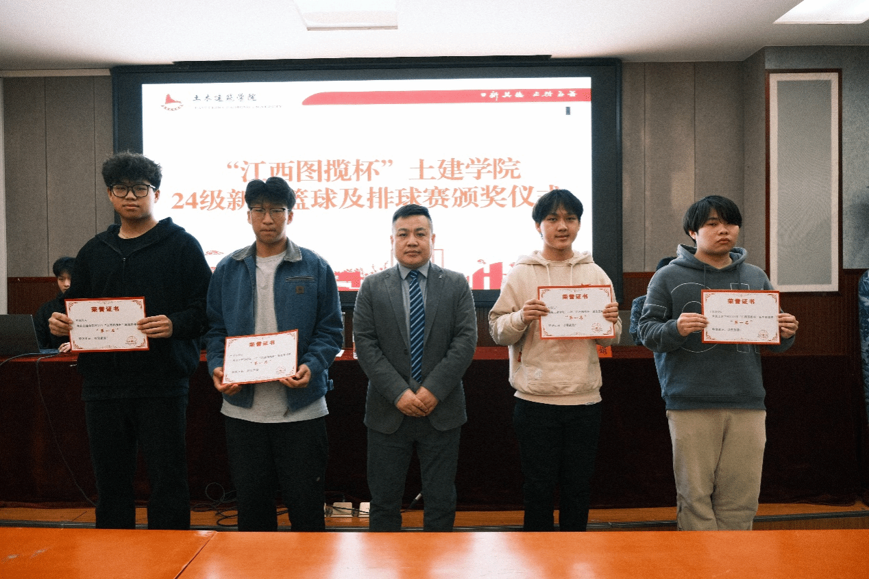 报告会前,员工李永珍和公司销售部经理邓梦云、综合部经理宋利娟分别为“江西图揽杯”土建学院2024级新生篮球赛、排球赛获奖代表队颁奖。
