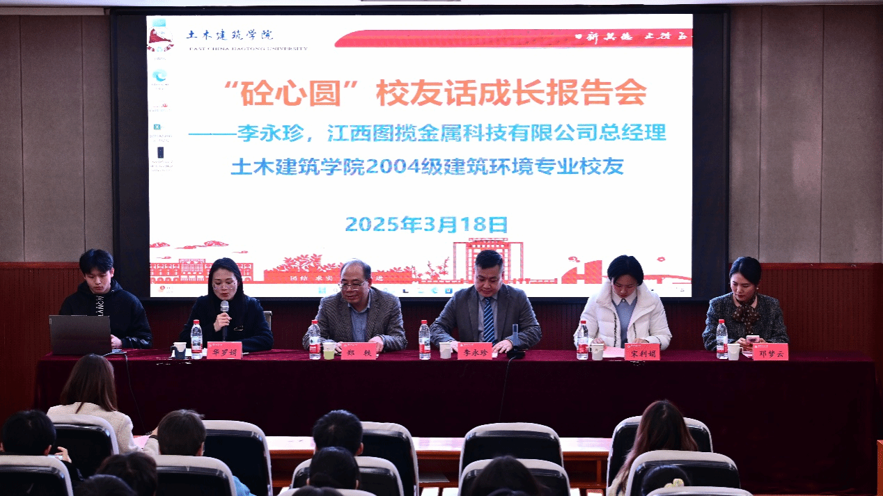3月18日下午,公司邀请2004级建环专业员工、江西图揽金属科技有限公司总经理李永珍,在教9栋200报告厅举行“砼心圆”员工话成长报告会。江西图揽金属科技有限公司综合部经理宋利娟、销售部经理邓梦云,土建公司党委副书记郑轶、学工办主任万雯怡及2024级员工代表参会,报告会由学工办副主任华罗娟主持。