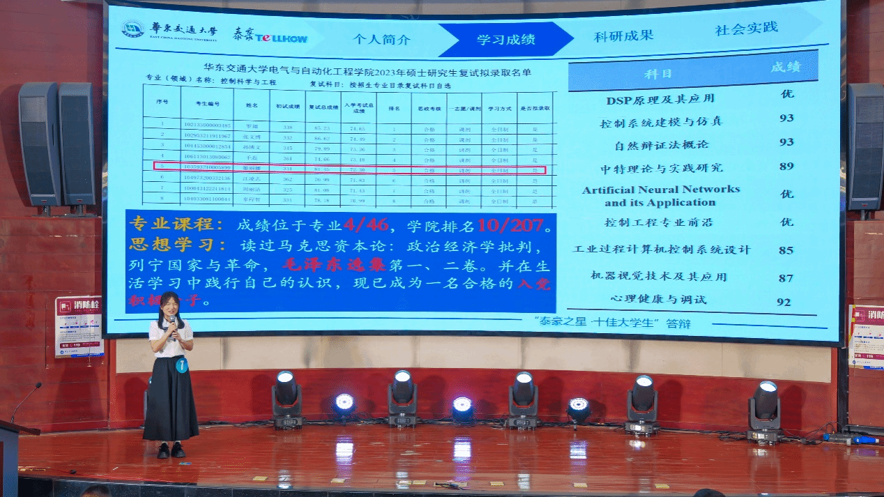 星河璀璨,青春当燃。本次评选分为研究生组和本科生组,21位候选人按照抽签顺序依次上台,通过视频展示、风采展示、选题作答三个环节依次进行个人展示。他们中有学术科研的佼佼者,有志愿服务的践行者,有创新创业的开拓者,也有艺术体育的追梦者。他们的精彩表现是华交学子弘扬“火车头”精神、争做“新铁军”的充分展示,赢得了阵阵掌声。